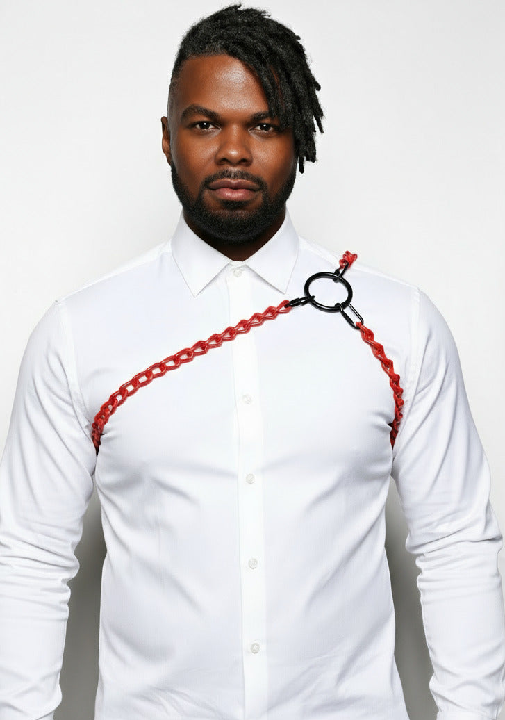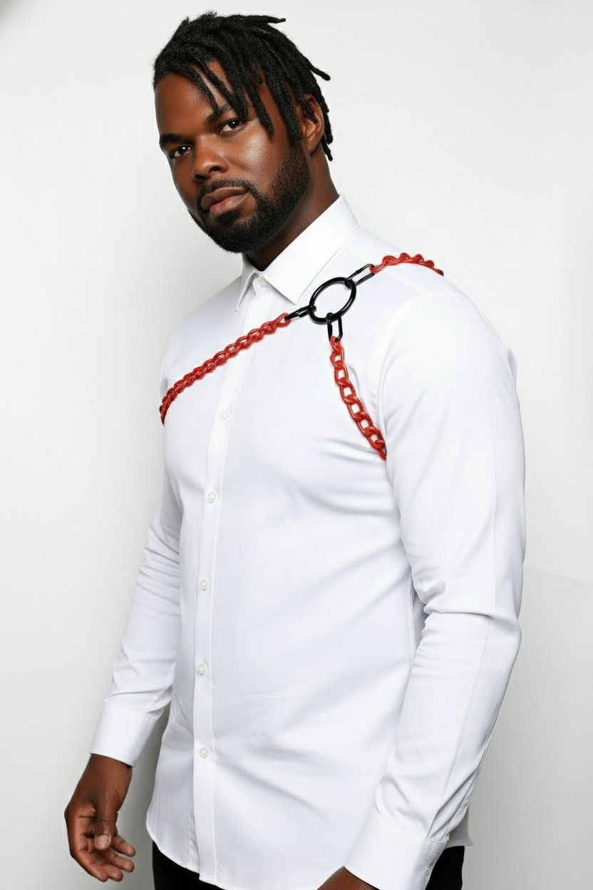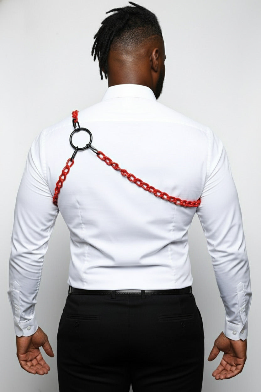 The Gladiator Red Plated Stainless Steel One Shoulder Harness with Black Fixtures