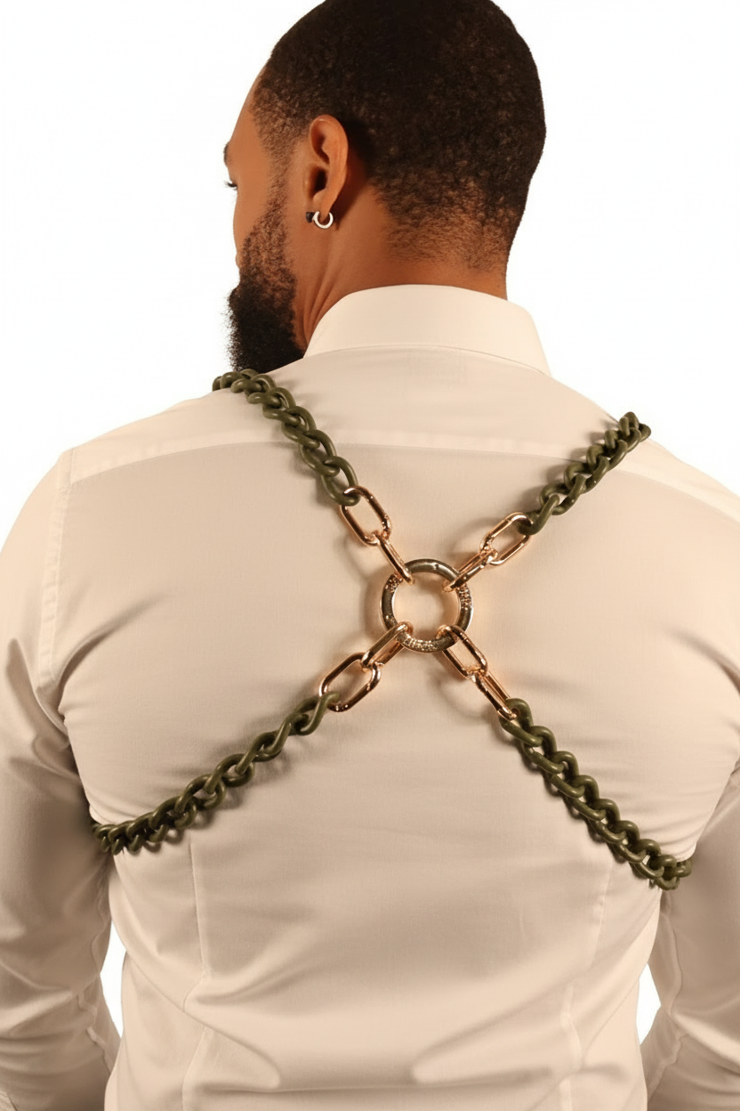 Military Matte Green Chain Harness / Overlay with Ring Elevate your look with this bold and stylish...